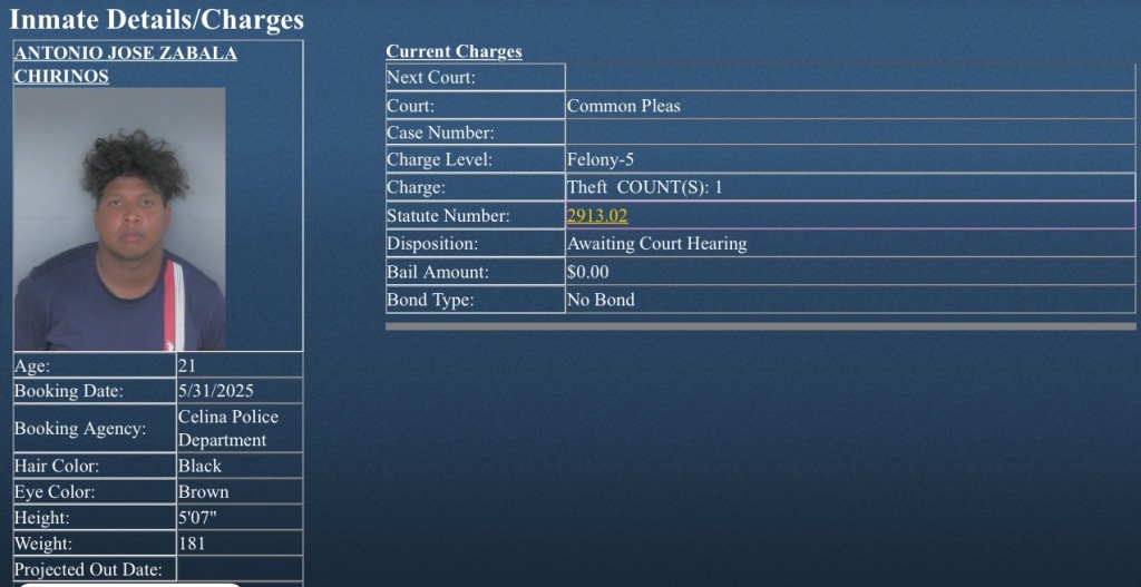 CELINA, OHIO — The Celina Police Department has arrested Antonio Chirinos (21) and Victor Osorio (27) on charges of fifth-degree felony theft, following an investigation into stolen property valued between $1,000 and $7,500.