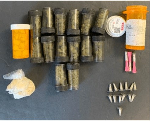 Around 2:40 p.m., police stopped a red Chrysler 300 at the intersection of Pioneer Drive and Reece Road. A search of the vehicle, based on probable cause, led to the discovery of 80 suspected Ecstasy pills, about 16 vials of suspected cocaine, and 15 vials of suspected marijuana.
