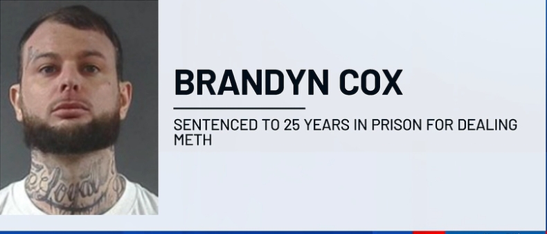 Prosecutors say 33-year-old Brandyn Cox was sentenced Wednesday after admitting to Dealing in Methamphetamine and Maintaining a Common Nuisance involving controlled substances. As part of his plea agreement, Cox acknowledged delivering methamphetamine to an undercover informant on two separate occasions.
