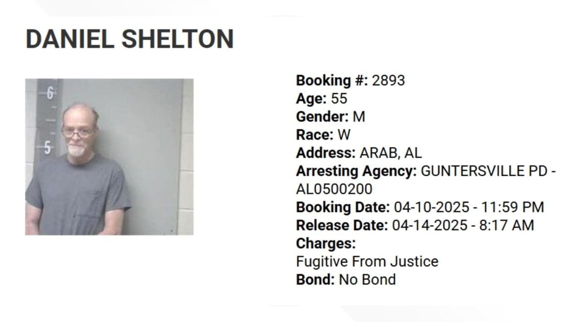 He was later located by Cullman Police, brought in for questioning by HPD detectives, and subsequently arrested and booked into the Madison County Jail.