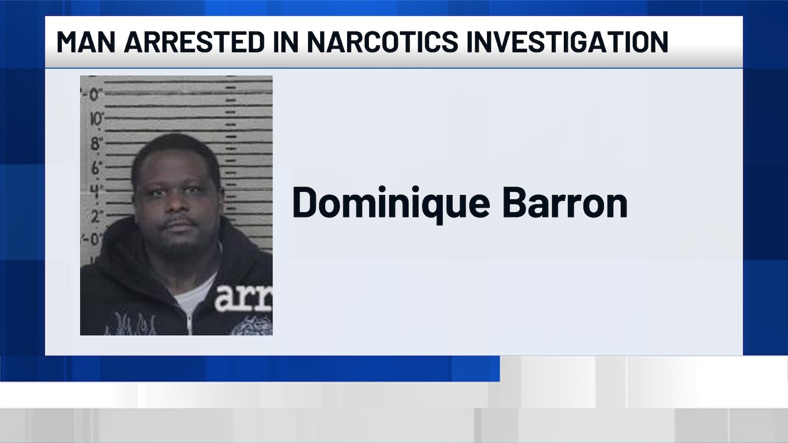 As a result of the investigation, Dominique Barron, 35, of Detroit, was taken into custody. He was lodged in the Carter County Detention Center on pending charges of trafficking in a controlled substance.
