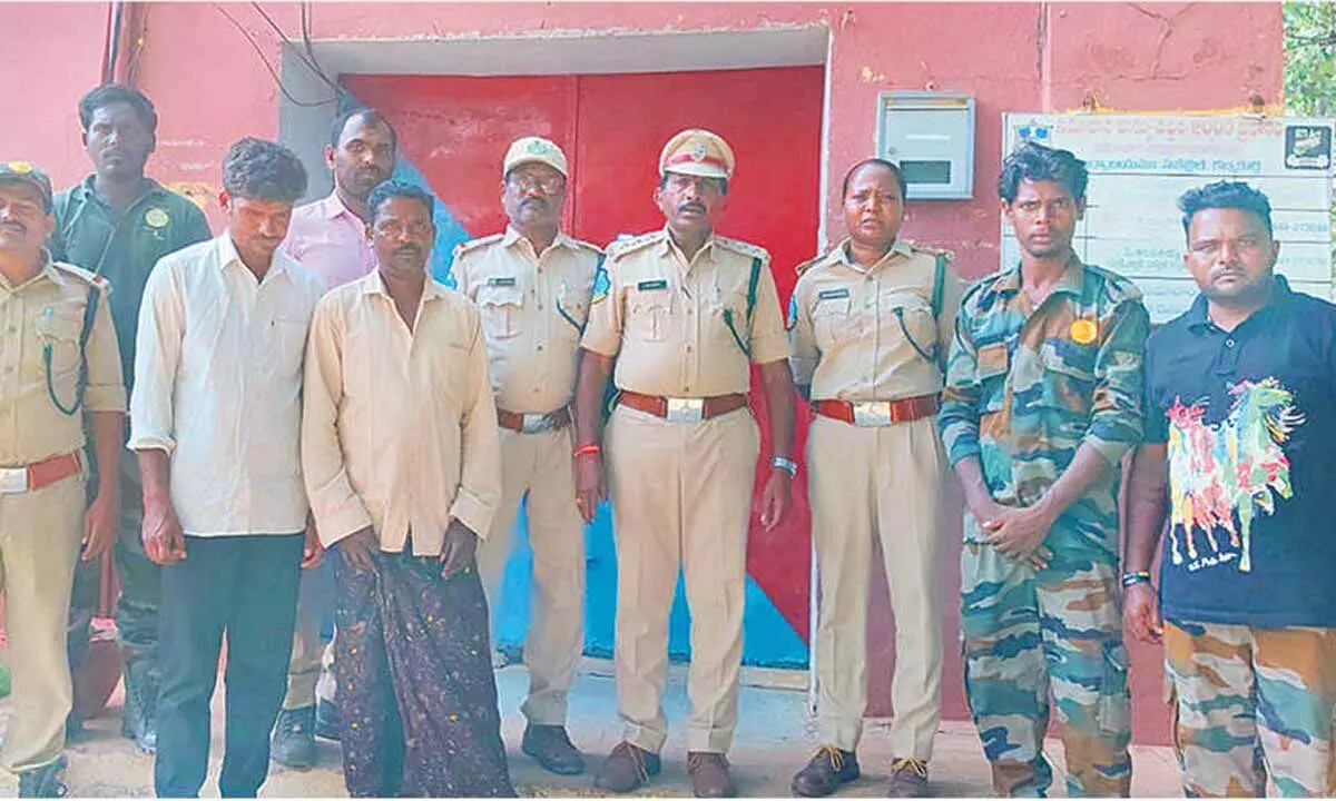 Two individuals were arrested this week for allegedly hunting protected monitor lizards in the Bapampadu beat area of the Maddimadugu range. The accused were identified as Hanumanthu from Ippalapally village and Mothilal from Udimilla village.
