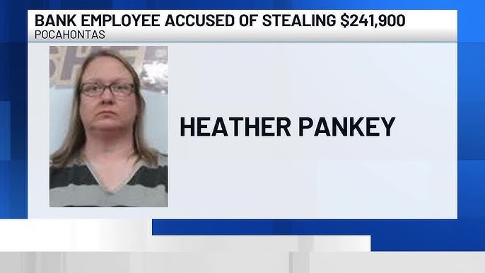 Heather Pankey, 45, was arrested Wednesday after an internal investigation at First National Bank of Commerce in Pocahontas uncovered suspicious activity tied to her.