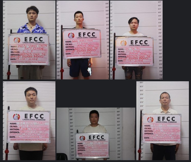 The convicted individuals — JIA You (aka A. You), Wang Zheng Feng (aka Feng), Liu San Hua, Chen Wen Yuan, Liu Beixing, and Wen Zong Xu (aka Li Long) — were part of a larger group of 792 suspects apprehended during the EFCC’s “Eagle Flush Operation” on December 19, 2024. The crackdown targeted scammers involved in cryptocurrency investment schemes and romance fraud.