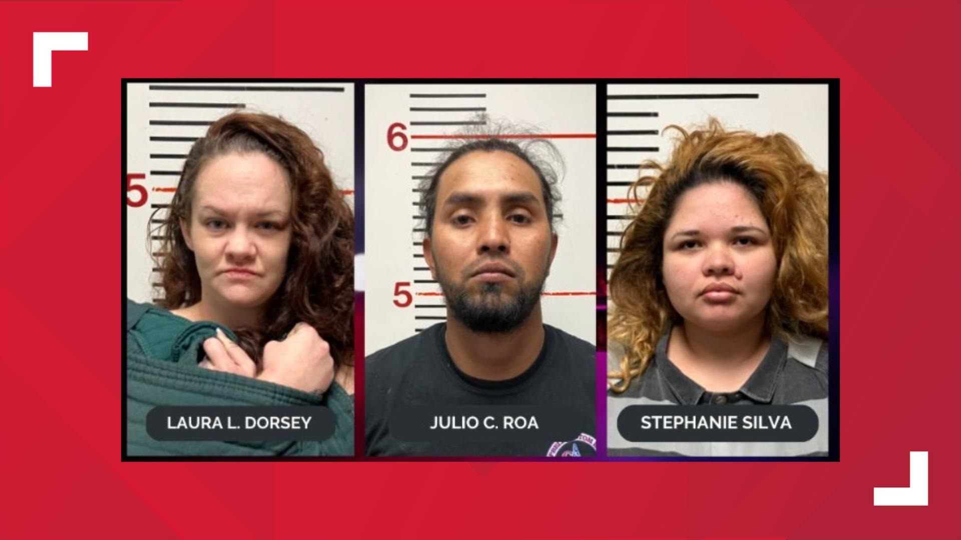 All three adults have been charged with manufacture or delivery of a controlled substance and endangering a child. Child Protective Services took custody of the infant following the arrests.