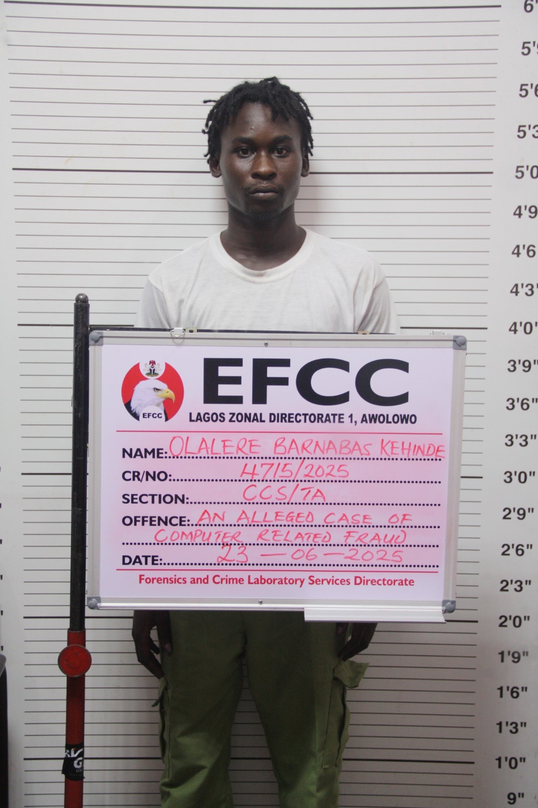 Justice Alexander Owoeye of the Federal High Court, Ikoyi, Lagos, on Thursday, July 3, 2025, sentenced Olalere Kehinde Barnabas to two years in prison for committing internet fraud.