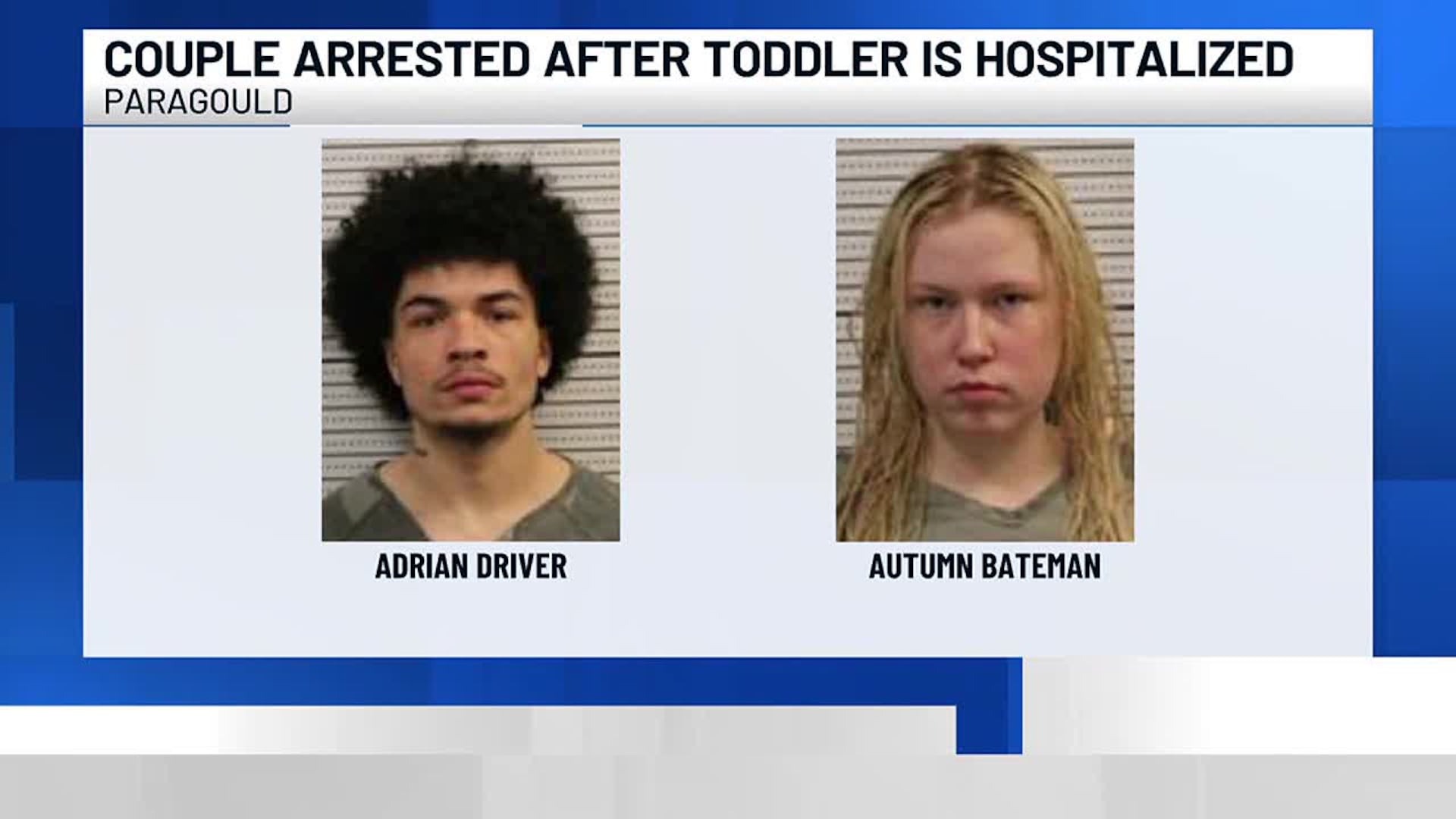 Paragould, Ark. (KAIT) — A Paragould couple has been taken into custody following the emergency surgery of their two-year-old child, who was found to have suffered from a “repeated pattern” of physical abuse.
