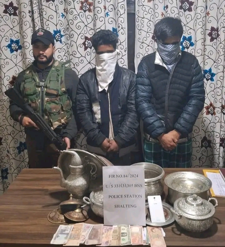 According to a police spokesperson, on November 7, 2024, Shabaz Geelani, a resident of Tawheed Abad Maloora, lodged a complaint with Police Station Shalteng. He stated that on November 6, 2024, unknown burglars had entered his home and stolen several items, including copper utensils, cash, and a mobile phone.