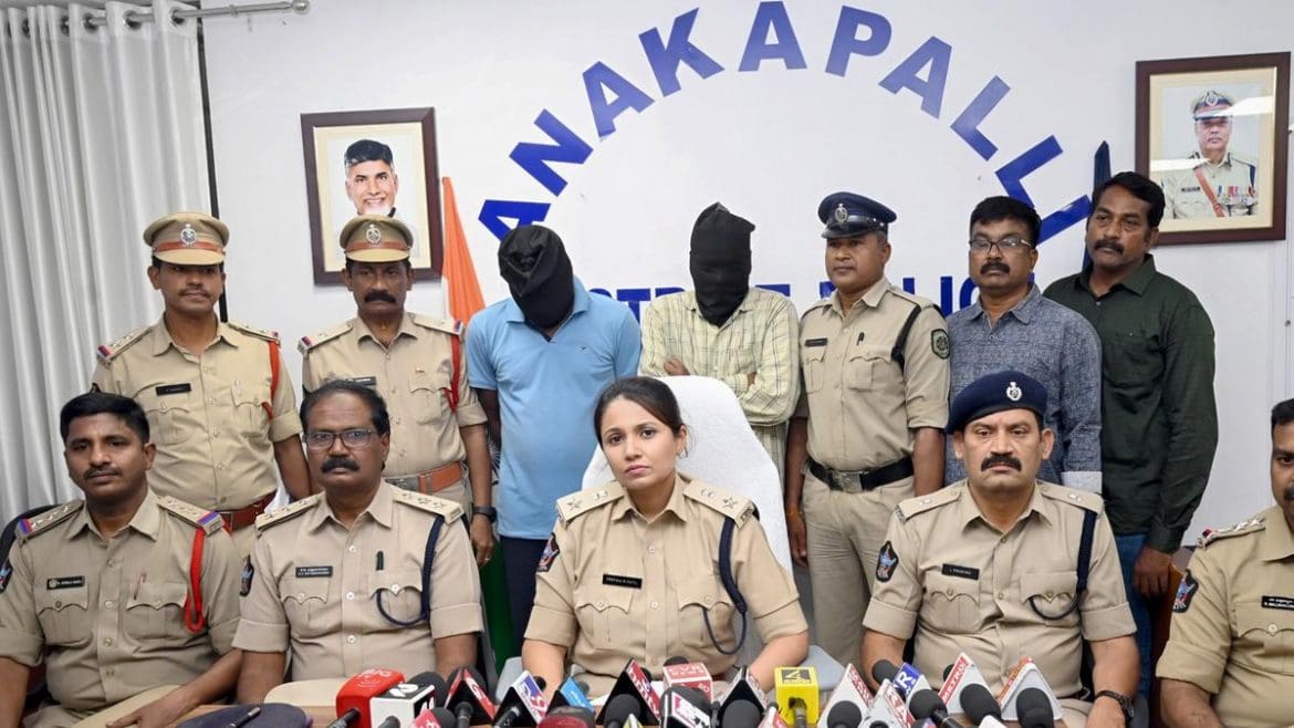 In a significant breakthrough, Anakapalli police arrested two individuals in connection with a house break-in that took place recently. The suspects were identified as V. Polaraju alias Bheema (45) from One Town and Ch. Ellaji (32) from Bheemunipatnam.