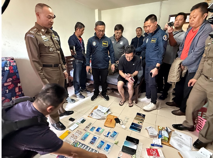 A police raid conducted on January 9 led to the arrest of two men, Mr. Li, 49, and Mr. Zhu, 47, at JR Court in Nuanchan Soi 60, Bueng Kum district. Authorities also seized a Honda CR-V equipped with the fraudulent base station device, 11 mobile phones, several bank accounts, ATM cards, and over 30 SIM cards.
